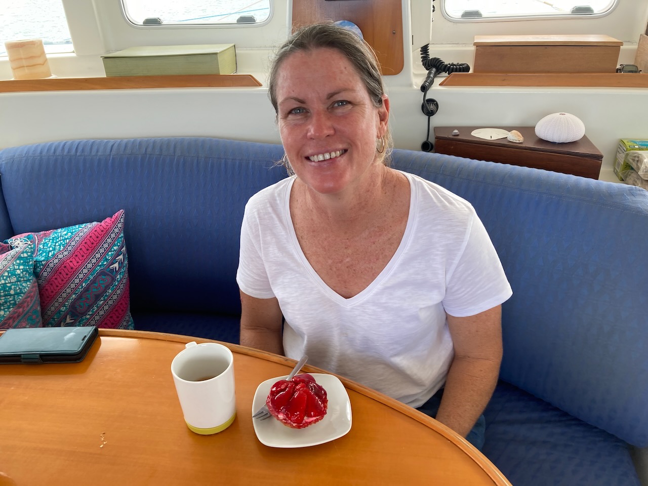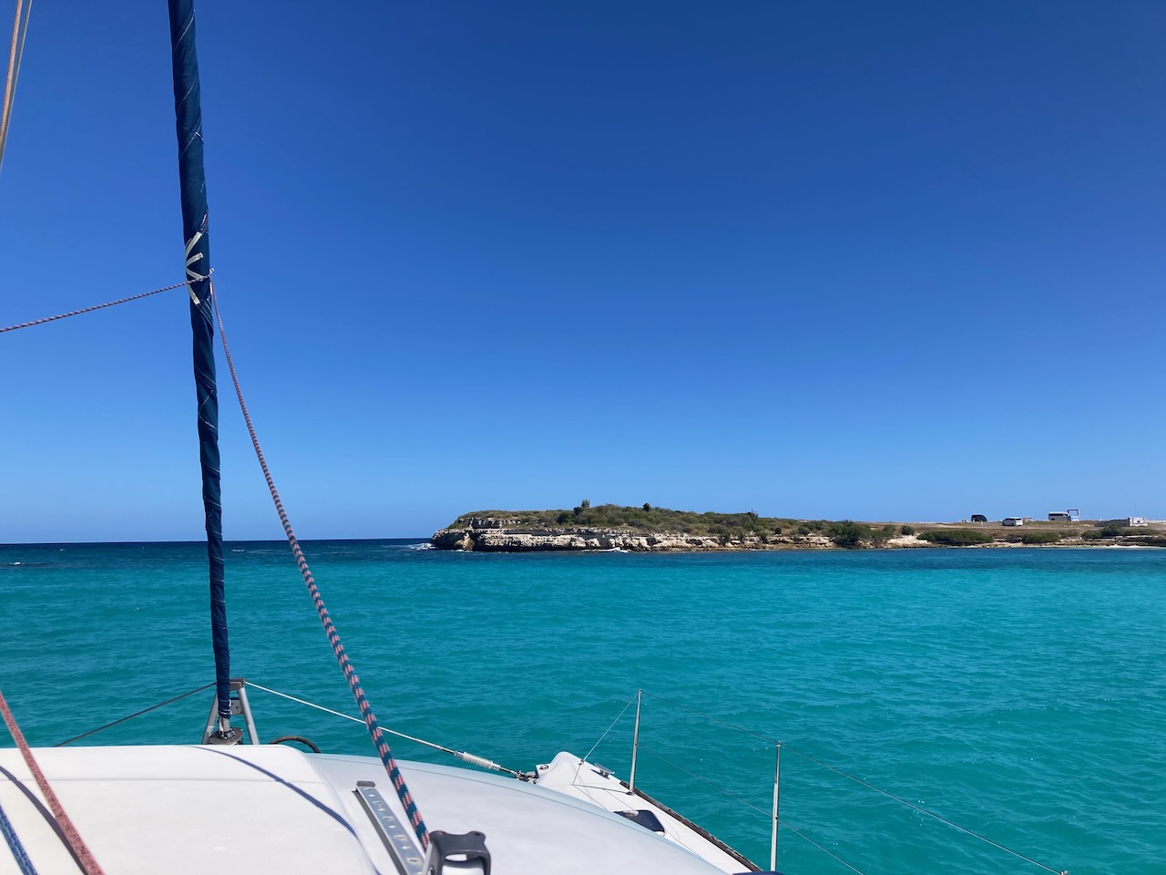 Nach unserem Chartertörn besuchten wir für ein paar Tage unsere Freunde Solveig & Arno. Wir können quasi genau vor Arnos Haus ankern, in einer wunderschönen türkisfarbenen Bucht.