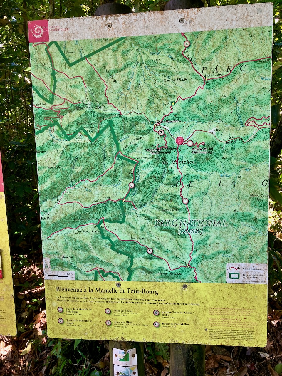 Ein Jahr zuvor waren wir bereits mit Stephanie und Michael auf den Mamelle de Pigeon gewandert, von wo aus man eine herrliche Sicht über die Nord- und Ostküste Guadeloupes hatte. Dieses Mal wollten wir auf den gegenüberliegenden Berg, den Mamelle de Petit Bourg.