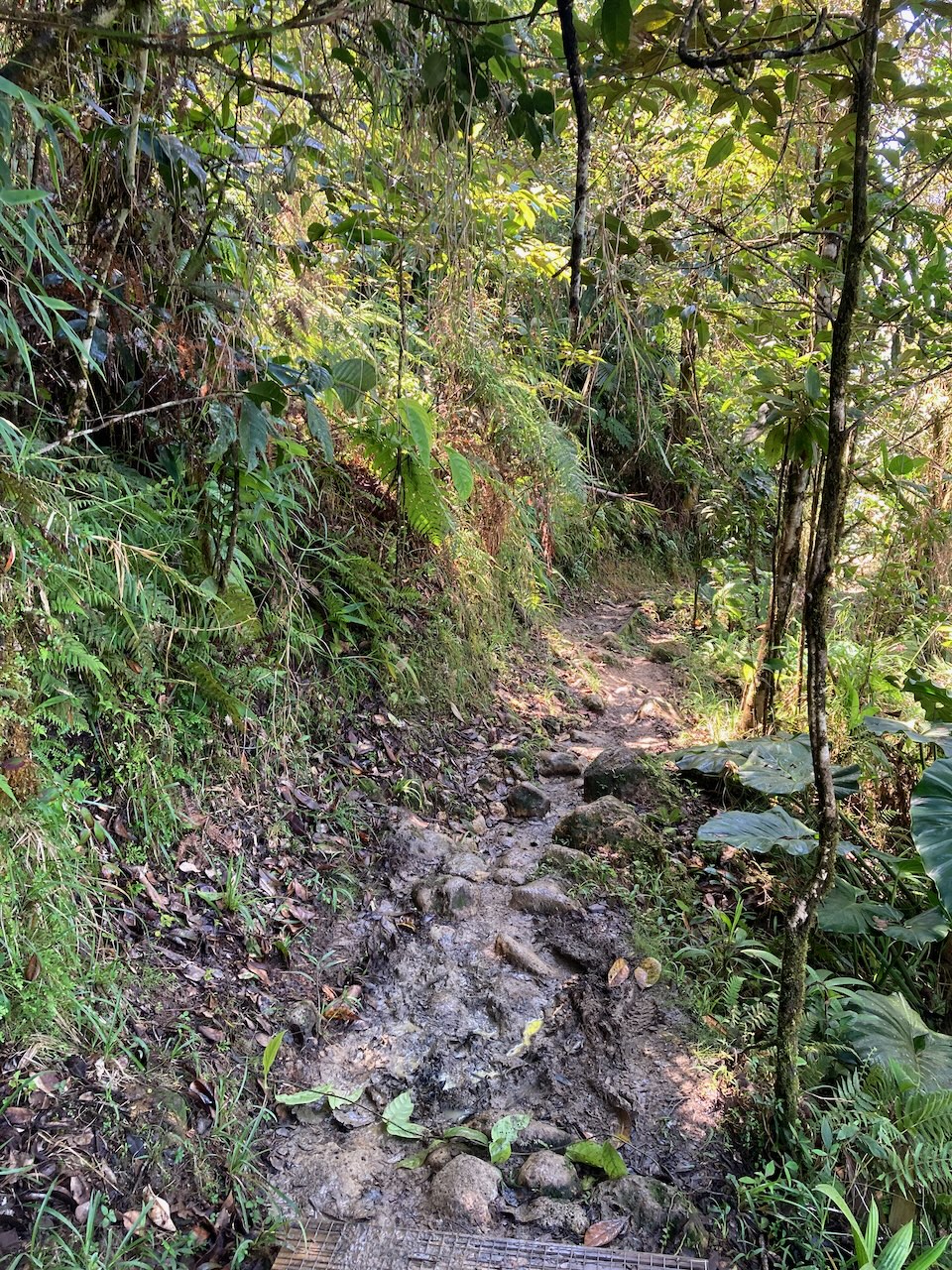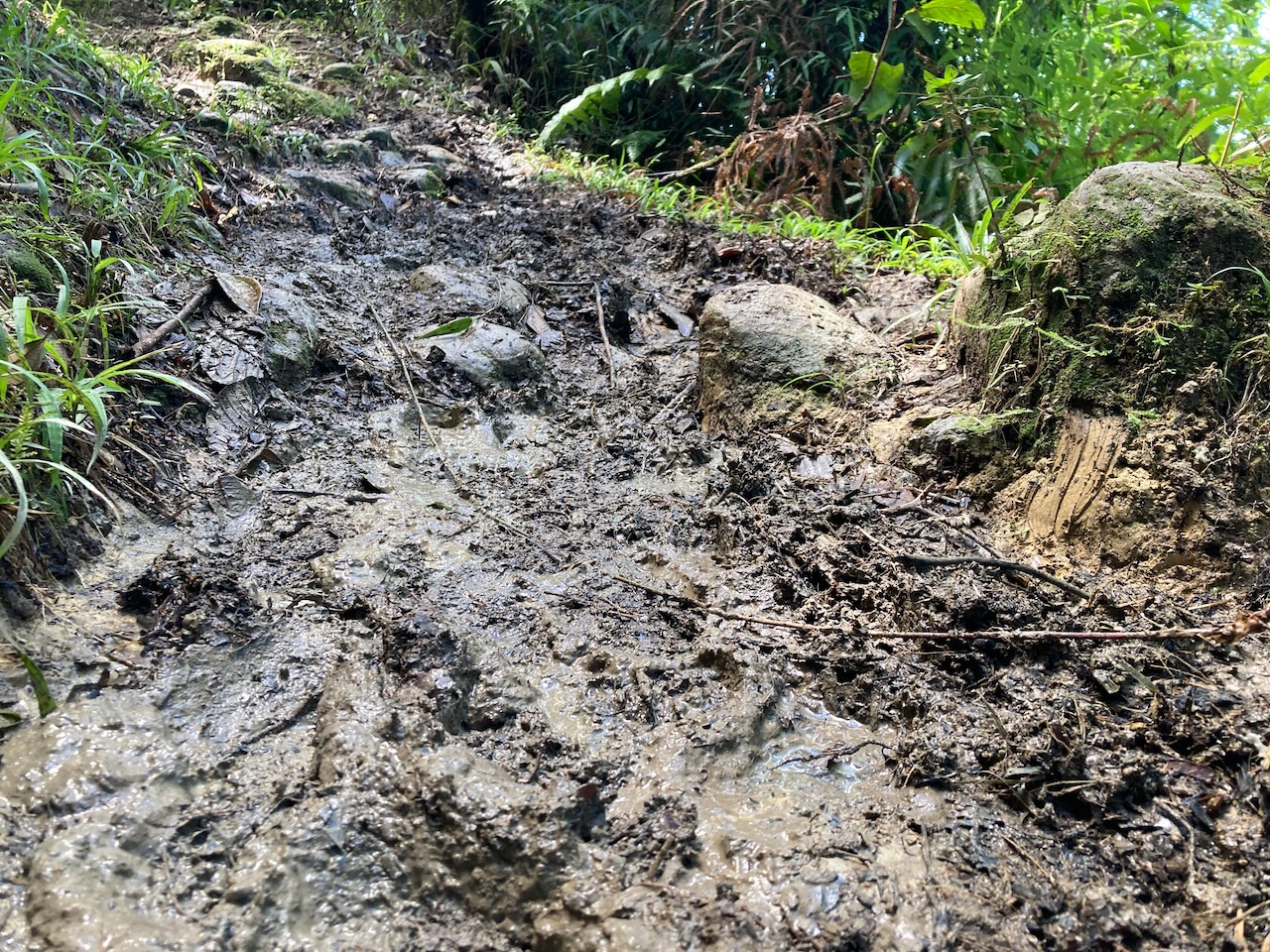 Ich muss sagen, dass der Aufstieg sehr ähnlich war wie im Vorjahr, nämlich matschig. Sehr matschig! Tja, im Regenwald da regnet’s halt und somit sind die Wege hier meist nass, glitschig und matschig.