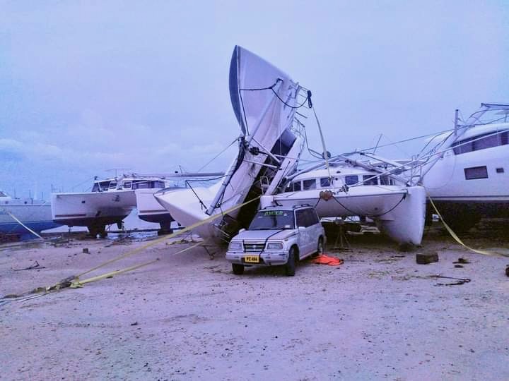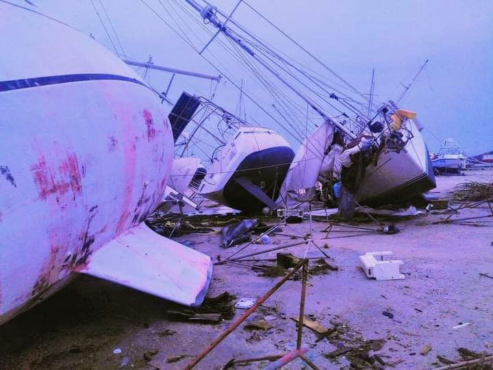 Doch nun möchte ich endlich mal damit anfangen und direkt an meinen letzten Blogbeitrag vom vergangenen Jahr anknüpfen: Die Verwüstung, die Hurrikan Beryl auf einigen Inseln in den Grenadinen anrichtete, war enorm. Einige Tage nachdem Beryl über Carriacou gezogen war, bekamen wir Fotos von umgekippten Segelbooten auf der Werft und teilweise umgekippten, teilweise gestrandeten Fotos von Booten in den Mangroven zugesandt.