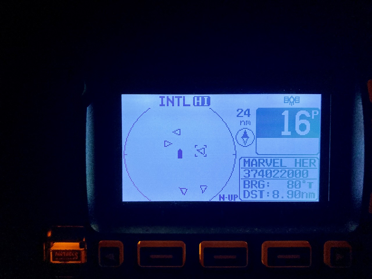 Nachts wurde ich dann von zwei Frachtern in die Zange genommen, aber auch an diesen beiden konnte ich mich gut vorbei drücken und nach vier Stunden war meine Wache ohne weitere Zwischenfälle zu Ende.