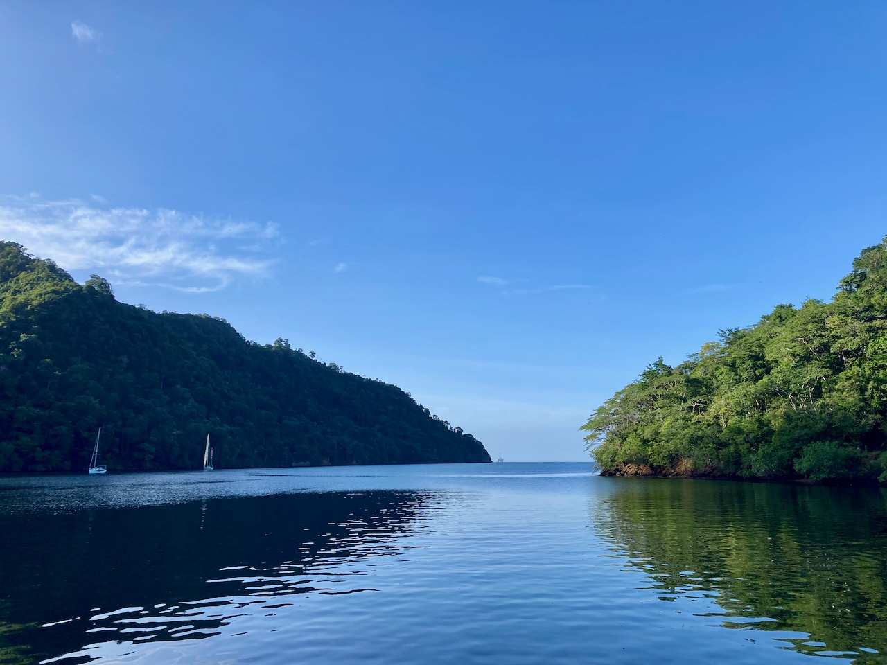 Doch als wir zurück ans Boot kamen, wackelten wir dort so sehr, dass wir fast seekrank wurden. Nee, das würden wir keine ganze Nacht durchstehen. Also gingen wir Anker auf und motorten noch schnell in eine kleine geschützte Bucht ganz im Westen Trinidads.