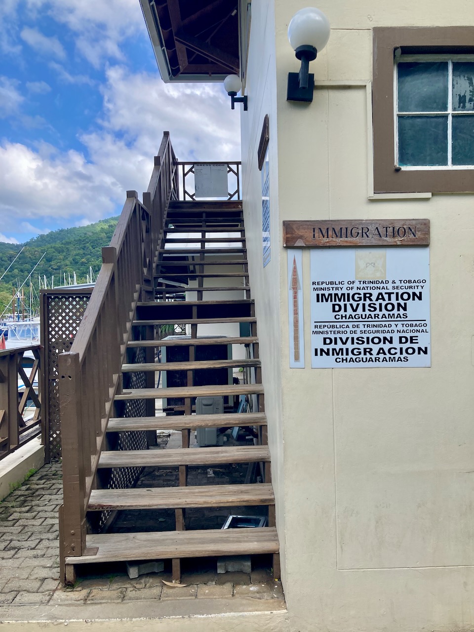 Am nächsten Morgen ging’s zum Ausklarieren. Dafür muss man in Trinidad & Tobago immer viel Zeit und Geduld mitbringen. Denn nicht nur, dass man unzählige Formulare ausfüllen muss, meist ist auch nur ein Officer da und man muss ewig warten. Zuerst ging es zur Einwanderungsbehörde und nachdem wir nach ca. 45 Minuten hier fertig waren, ging es zum Zoll. Hier war Kai nochmal eine halbe Stunde beschäftigt, dann hatten wir es geschafft und waren abreisebereit.