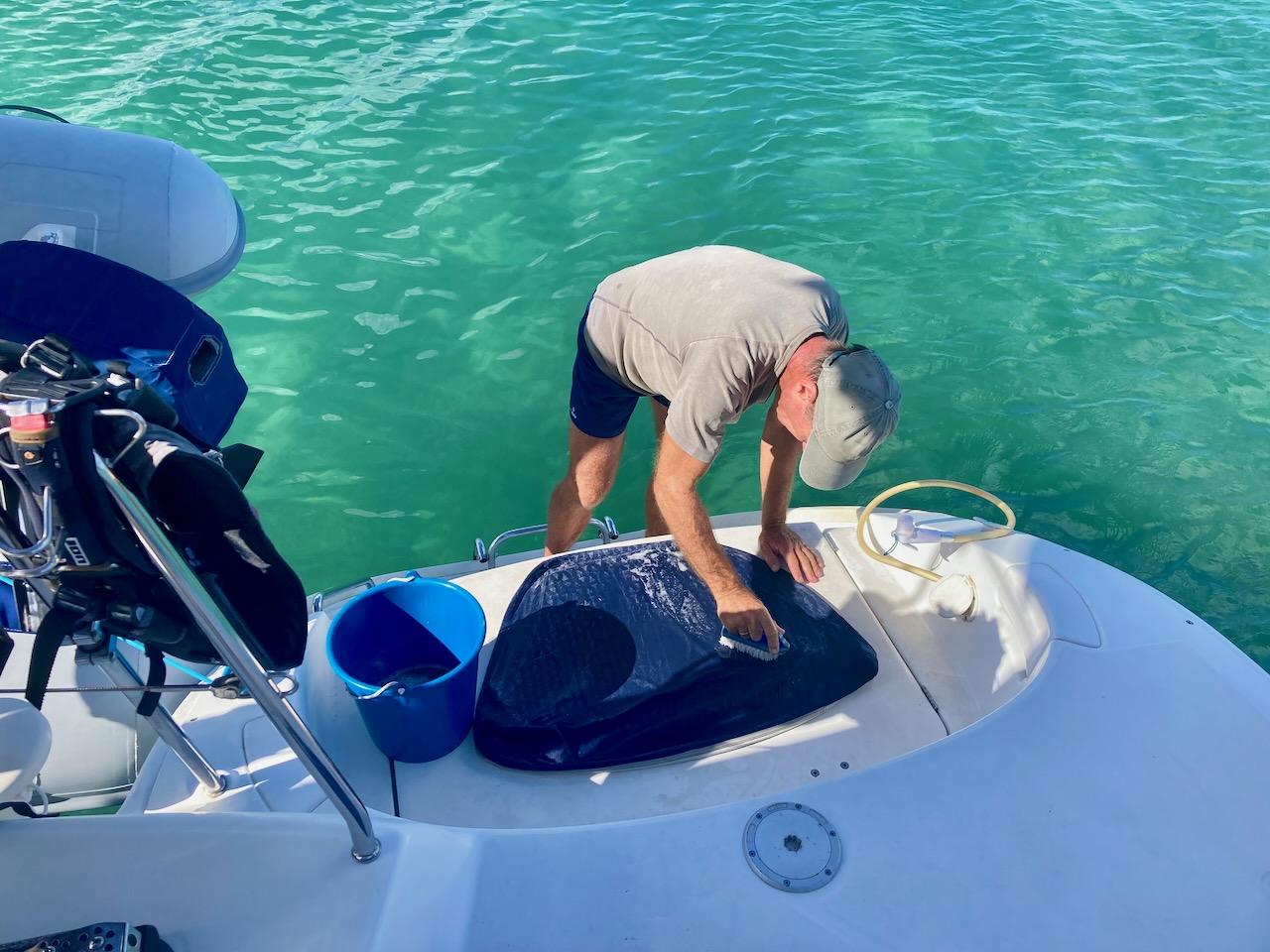 – unser Bimini musste mit neuem Waterproofing eingesprüht werden, weil der Regen durchkam