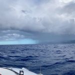 Laut Wetterrouting sollten uns bis ca. 14:30 immer mal wieder Regenschauer treffen und so war es dann auch. Da auch so gut wie kein Wind herrschte, hatten wir die Segel gar nicht erst hoch gezogen, damit uns diese nicht in den Wellen hin und her schlagen. Pünktlich um 14:30 Uhr klarte es auf, der Wind setzte ein, wir hatten den Regen hinter uns gelassen und konnten in strahlendem Sonnenschein die Segel setzen.